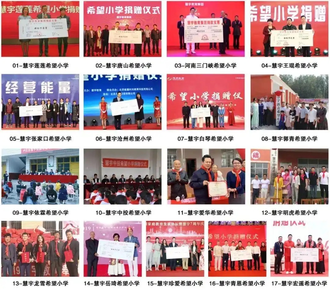 她刷了10万块以后,我就非常非常得感动,问她为什么要捐。她说很简单,“我要支持你的第一所希望小学。”后来我们才了解到捐希望小学不是你想捐就能捐的,必须有一个组织叫青少年发展基金会,有了她的这笔捐助,我们才找到这个基金会,再到后来了解到捐一所希望小学最低得需要50万。我就说不能让这个姐姐等太久,我们把公司的钱拿出来,一共就三四十万,那个时候就把公司所有账上的钱全拿出来,凑了50万在山东的枣庄捐了我们第一所希望小学,我的公司叫慧宇,她叫杜莲莲,我就以她的名字命名,其实她只捐了10万,我们捐了40万,但是我为了感谢她,就以她的名字命名叫“慧宇莲莲希望小学”。